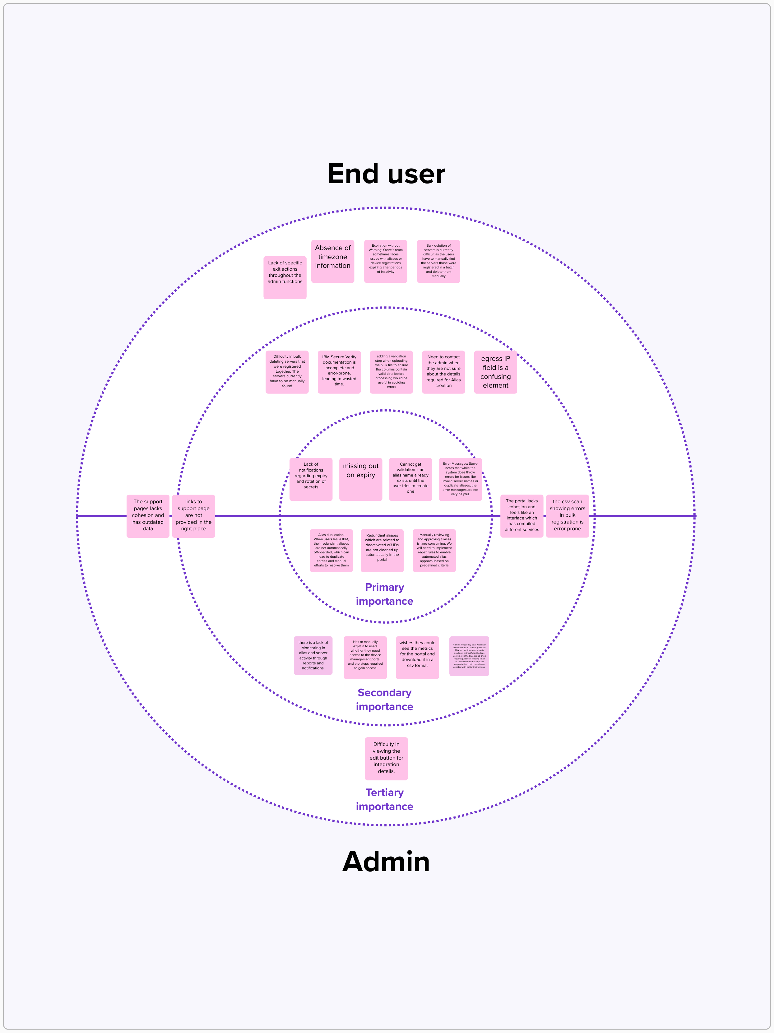 All user challenges that I identified during data synthesis were prioritized on a scale of primary importance - secondary importance - tertiary importance. The pain points in primary importance were the ones that I would focus most on during our 6 week roadmap